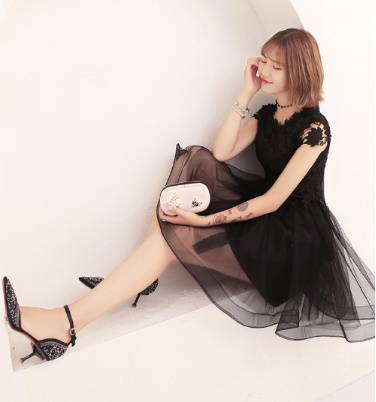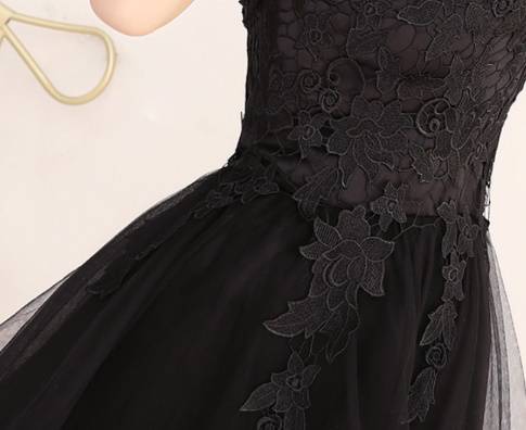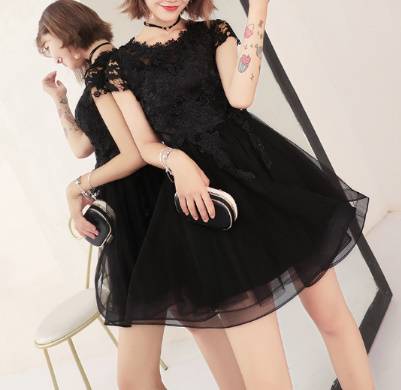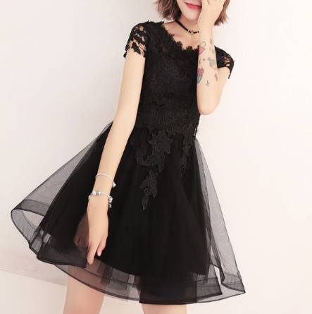 パーティードレス 春夏 結婚式 大きいサイズ 20代 ミニ丈 半袖 袖あり ラウンドネック レース 花柄 刺繍 Xライン ガーリー 黒