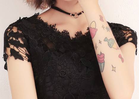 胸元と袖のレースがキュートで透け感が魅力的♪
