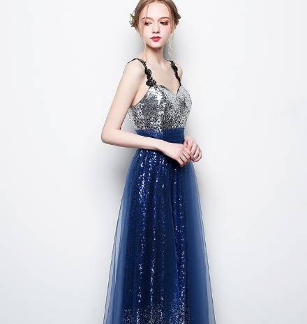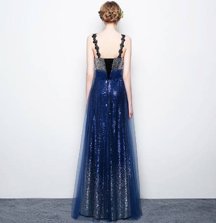 ロングドレス 演奏会 パーティードレス イブニングドレス 春夏 結婚式 二次会 披露宴 ネイビーブラック 大きいサイズ ロング丈 マキシ丈 キャミソール 袖なし Aライン Xライン フレア 刺繍 レース スパンコール 透け感 シースルー 20代 30代 豪華