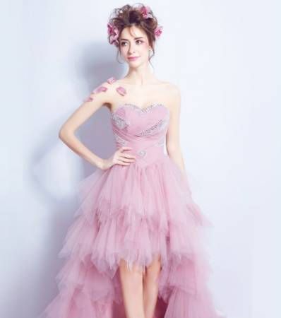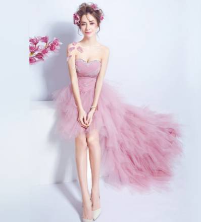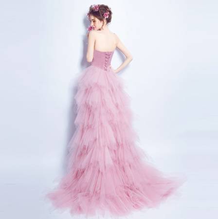 演奏会 パーティードレス ミニドレス 春夏 お呼ばれ 発表会 女子会 花嫁 ピアノ コンサート ステージ衣装 卒業パーティー ゲスト ピンク カラードレス 大きいサイズ ミニ丈 マキシ丈 ノースリーブ 袖なし ベアトップ 不規則 編み上げ フィッシュテール チュール ビジュー 20代