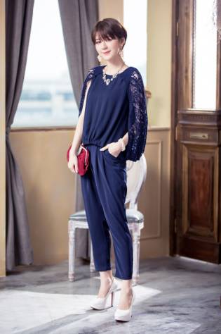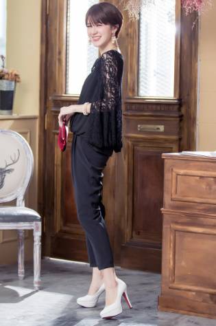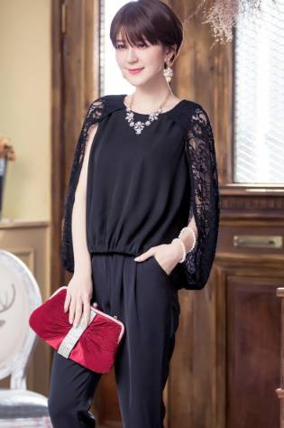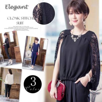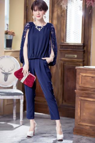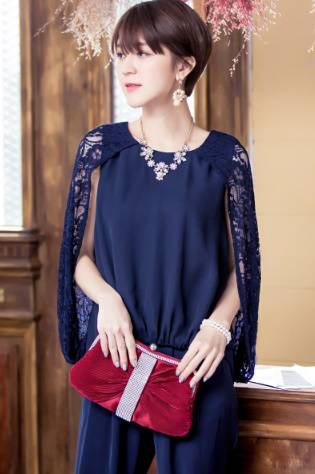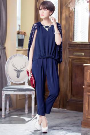 パンツドレス 結婚式 パンツスタイル 結婚式のパンツスタイル セットアップ ケープ風 花柄 レース シンプル 同窓会 お呼ばれ 謝恩会