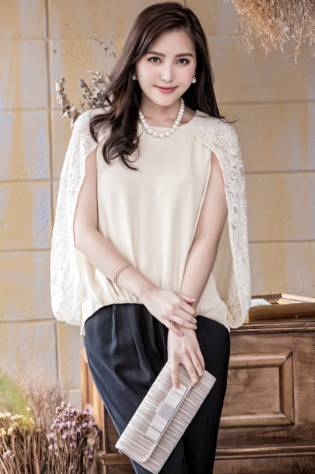 ケープやカーディガンを羽織っているような、人気のケープ風トップス。