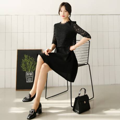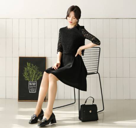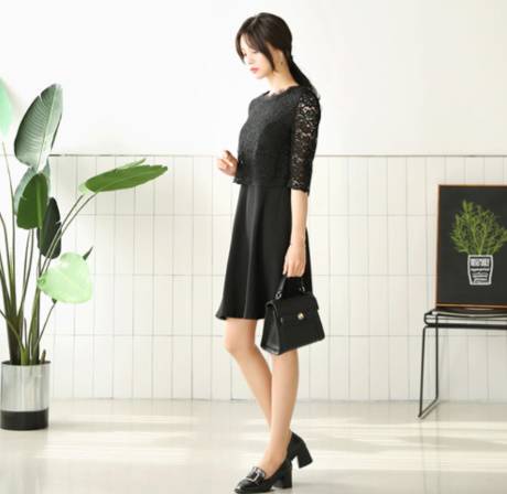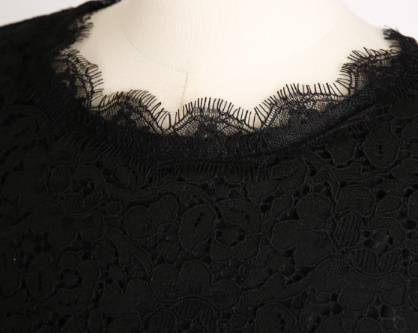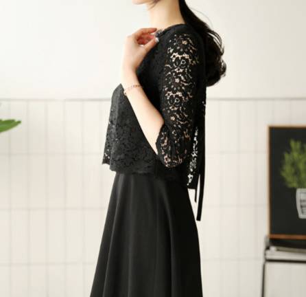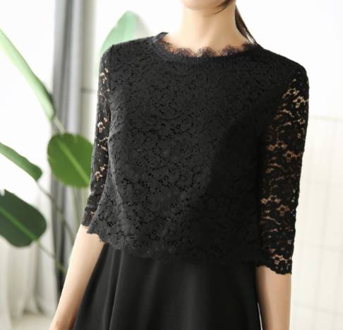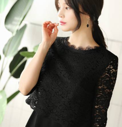 トップのレース柄と袖の透け感がフェミニンでエレガント。