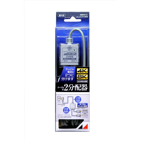 日本アンテナ RMED215L 4K8K放送対応 屋内用ケーブル付2分配器 全電通タイプ