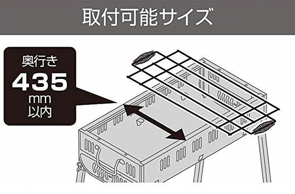 焚き火台で使用したり、バーベキューグリルやコンロに乗せて使えば、スキレットやダッチオーブン、クッカーやフライパン、ケトルなどの調理に使えます。 ![]() 取付可能サイズ 焚火ゴトクが使用できるのは奥行き43.5cm以内の焚き火台、グリル、コンロに限ります。バーベキューコンロや焚き火台の形状、サイズによっては取付けできない場合があります。 ![]() ![]() |