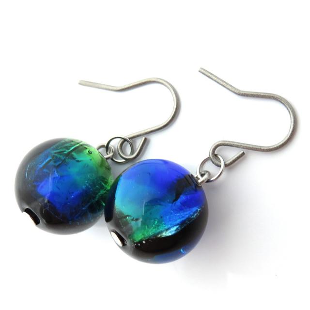 ケラママリン ホタルガラス ピアス 両耳用 フックはチタン製 沖縄 お土産 慶良間諸島
