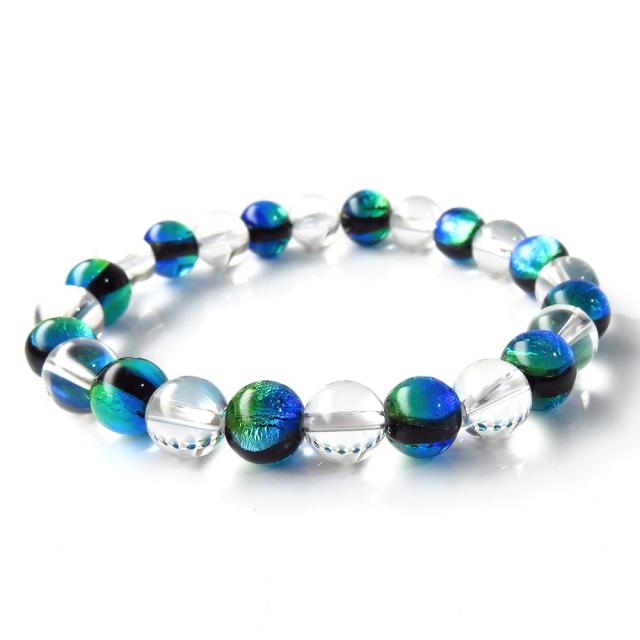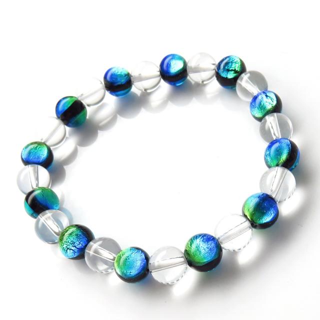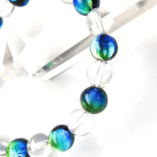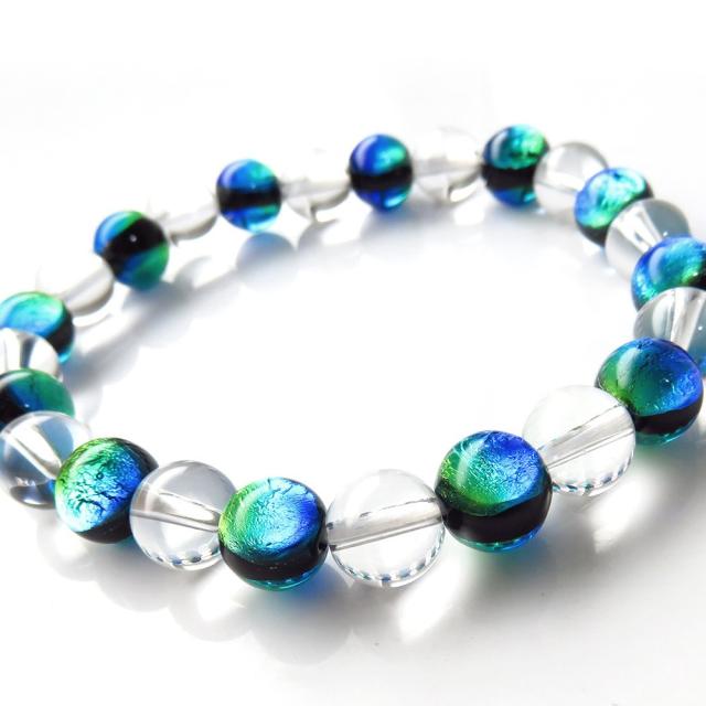 ケラママリン ホタルガラス 水晶 AAA ブレスレット 8mm 沖縄 ホタル石 とんぼ玉