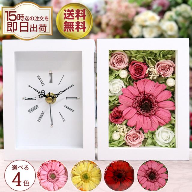 プリザーブドフラワー 時計 結婚祝い 結婚記念日 誕生日 退職祝い 定年退職 プリザーブド フラワー プレゼント ギフト 贈り物 おしゃれ かわいい 花時計 記念日 結婚式 両親 花 バラ 還暦祝い 還暦 古希 喜寿 傘寿 米寿 卒寿 結婚 お祝い 女性 フレーム の ガーベラ & ローズ