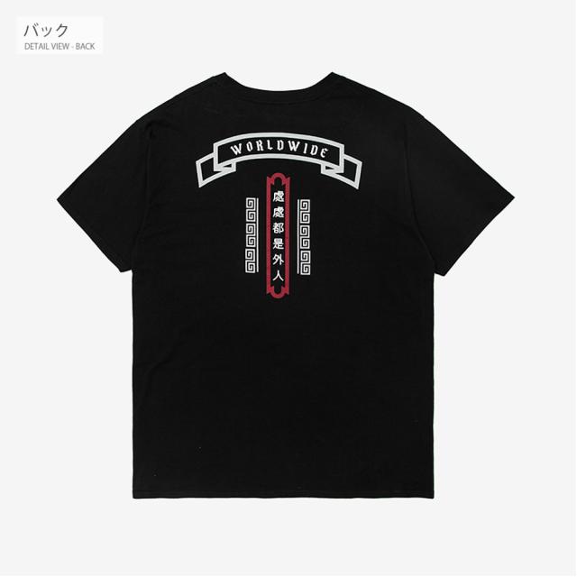 【ポイント15倍UP】完売御免【送料無料】半袖 Tシャツ メンズ トップス バックプリント ロゴ レディース 外国語[2色]#TA114 M便 BL