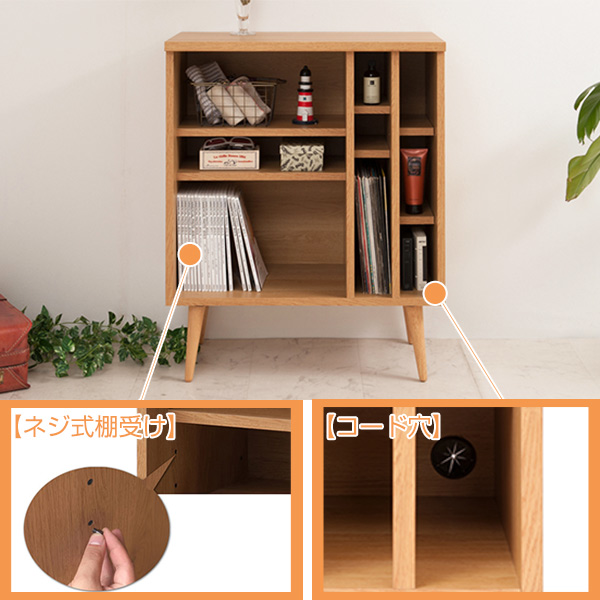 置く場所を選ばず収納としてだけでなくディスプレイラックにもおすすめ。また、電話台・FAX台にも。可動棚と幅の違うオープン収納なので収納したいものにあわせられます。