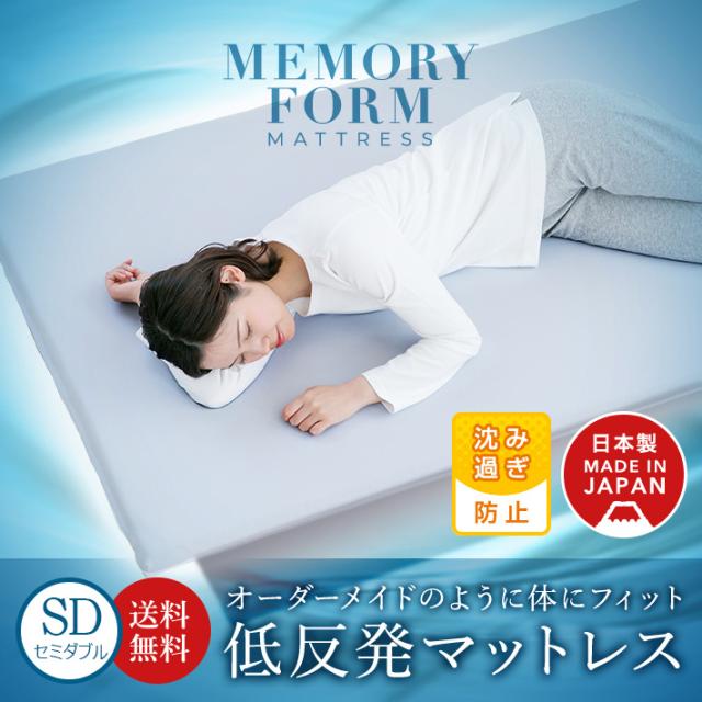 マットレス 低反発 セミダブル 厚さ5センチ 日本製 送料無料(一部地域除く) 洗えるカバー メッシュ スムース生地 水色《低反発SD》