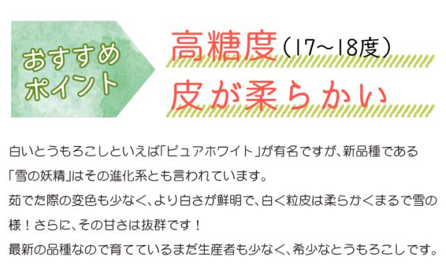 北海道、北海道産、とうもろこし、トウモロコシ、とうきび、トウキビ、スイートコーン、コーン、フルーツコーン、ホワイト、ホワイトコーン、白、白い、白いとうもろこし、夏、夏野菜、野菜、フルーツ、甘い、高糖度、糖度、シャキシャキ、ジューシー、薄皮、皮、粒、大きい、朝採り、新鮮、鮮度、旬、産地直送、農家直送、農家、直送、産直、自宅用、ご自宅用、手土産、お土産、配る、BBQ、バーベキュー、クール便、冷蔵、冷蔵便、人気、高級、おすすめ、家族、子供、子ども、高齢者、祖父、祖母、おじいちゃん、おばあちゃん、おやつ、夏休み、お盆、10代、20代、30代、40代、50代、60代、70代、80代、90代、詰め合わせ、詰合せ、バラエティ、セット、食べ比べ、お試し、お取り寄せ、取り寄せ whc