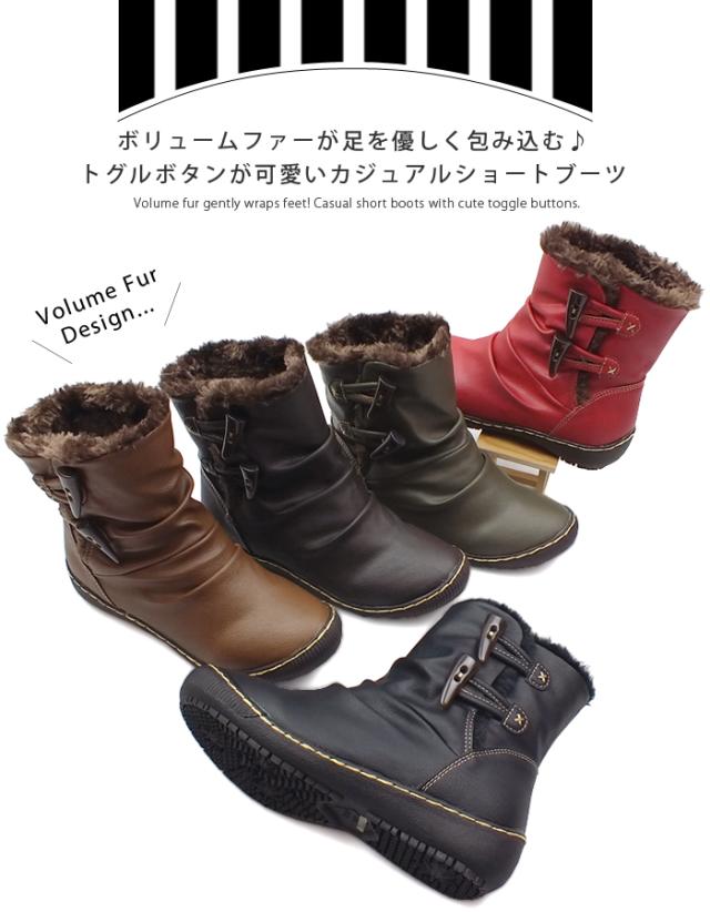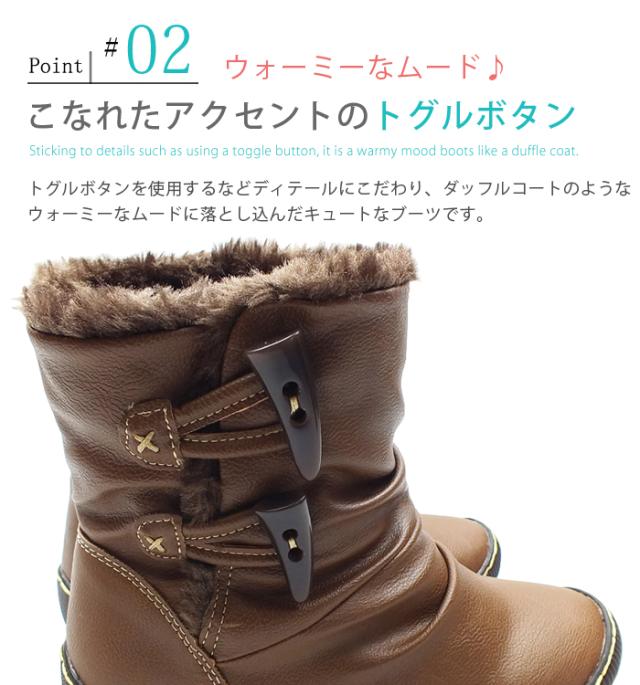 サイドのトグルボタン(ダッフルボタン)が可愛い仕上がり!ボリュームファーが足を優しく包みます!