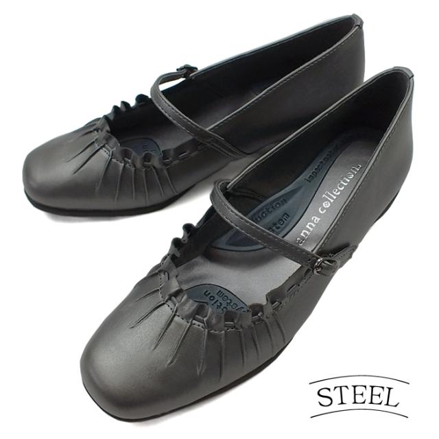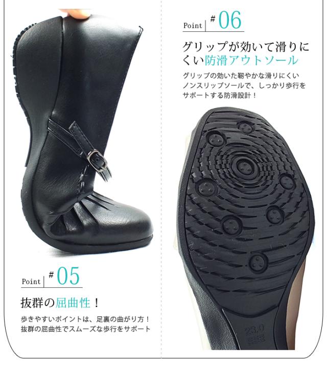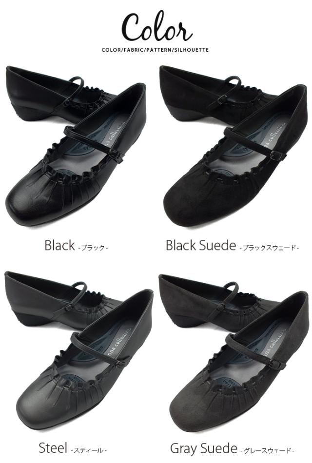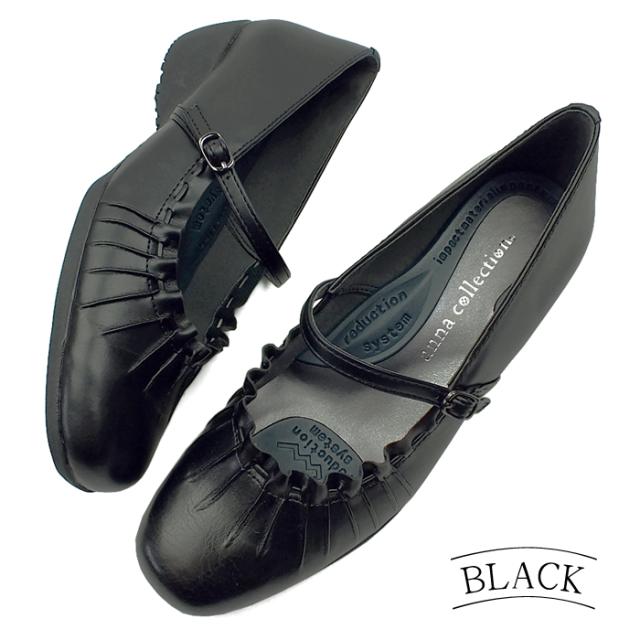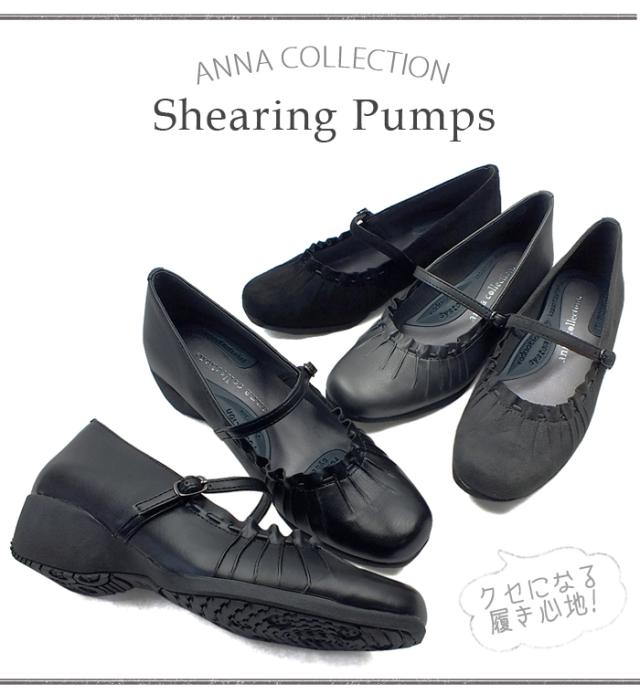 シャーリング加工がフェミニンなラウンドトゥコンフォートパンプス デイリーユース パーティ ビジネス リクルート オフィス ウェッジソール ウエッジソール 痛くない 歩きやすい レディース 3E 幅広設計 黒 送料無料 ANNA COLLECTION アンナコレクション 0100942