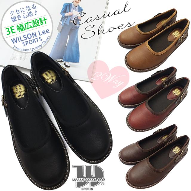 甲ストラップ カジュアルシューズ フラットシューズ 軽量 防滑 コンフォート 3E 幅広設計 ローカット EEE スニーカー スリッポン 痛くない 歩きやすい 低反発インソール レディース 2wayカジュアルシューズ 送料無料 WILSON LEE SPORTS ウィルソンリースポーツ 0105853