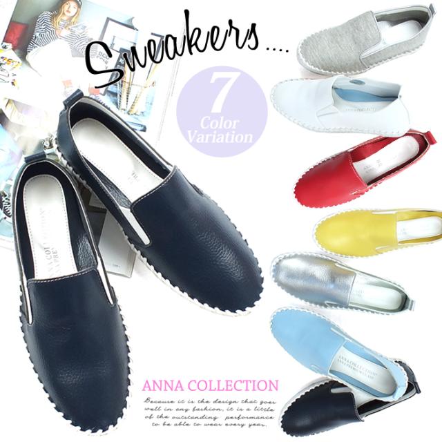 楽天ランキング入賞☆ANNA COLLECTION-アンナコレクション-スリッポン ローカット カジュアルシューズ 低反発インソール レディース スニーカー 3E 幅広設計 靴 ふかふかな履き心地♪スリッポンデザインのフラットスニーカー