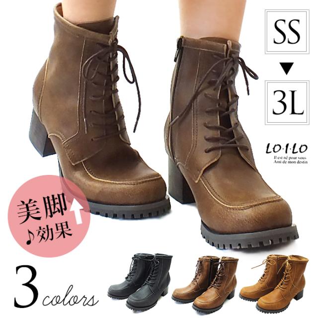 レディース ファスナー チャック 痛くない 歩きやすい 靴 婦人靴 上質な本革のような風合いのレースアップカジュアルショートブーツ 高さ5.0cmの太ヒールは安定感だけじゃなくスタイルアップも♪サイドファスナー仕様で履き脱ぎ楽ちん 送料無料 LO.I.LO ロイロ 2303201