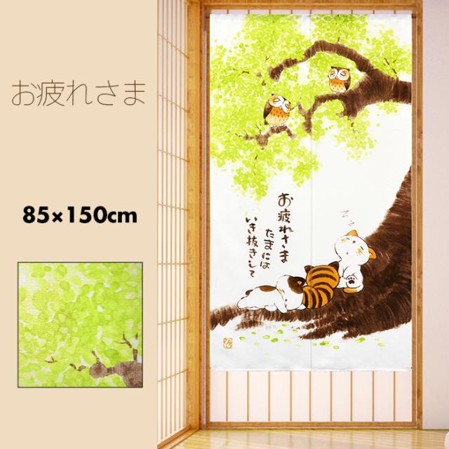 のれん 暖簾 おしゃれ カーテン 間仕切り 仕切りカーテン 目隠し 和風 和柄 和モダン 和風モダン 和風暖簾 日本 メッセージ付き 猫 ねこ にゃんこ お疲れさま 85×150cm ひろとも 日本製 国産