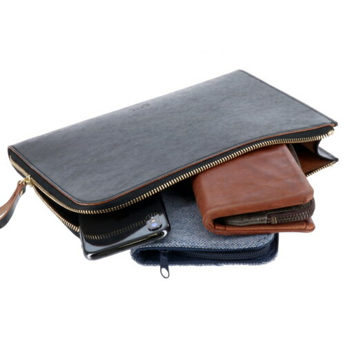 特徴的な凹凸のあるショルダー革にガラス加工+ヤスリ掛けをした、濃淡のある豊かな表情が自慢のクラッチバッグ。
