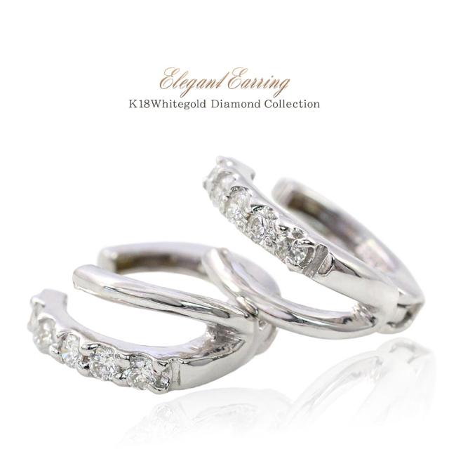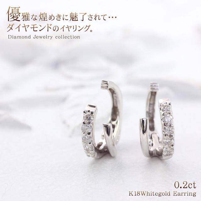 ダイヤモンド イヤリング 18金 ホワイトゴールド k18 ジュエリー リング プレゼント 18k レディース プレゼント ノンホール フープ 輪っか ダイヤモンドイヤリング ピアス風 母の日 ギフト 2026 誕生日 贈り物 女性 彼女 嫁 コンサバ