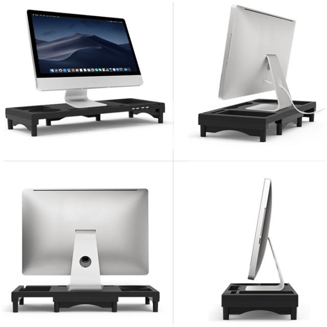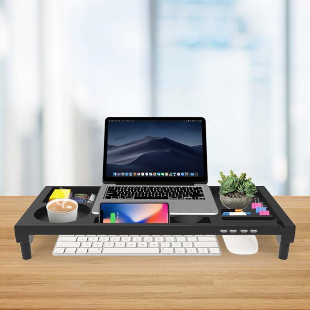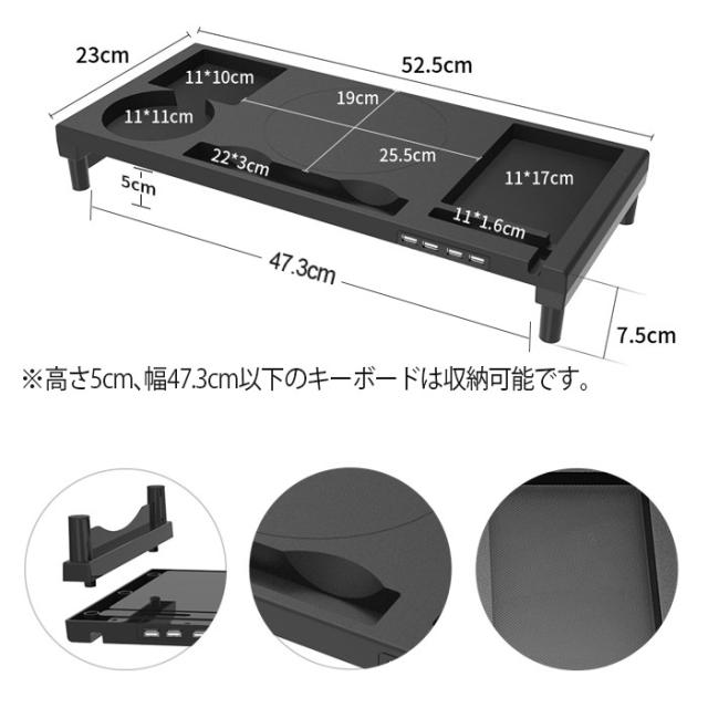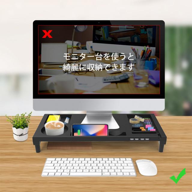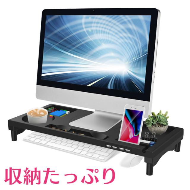 モニター台 机上台 モニタースタンド USBハブ付き 幅52cm 奥行23cm ブラック 机上ラック 液晶モニター台 USBポート