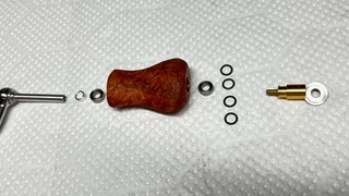 対象リールはシマノやダイワそして社外ハンドルにも幅広く装着対応する為、専用エンドビスや取り付け工具は勿論、多くのカスタマイズパーツと調整シムも同梱されています。