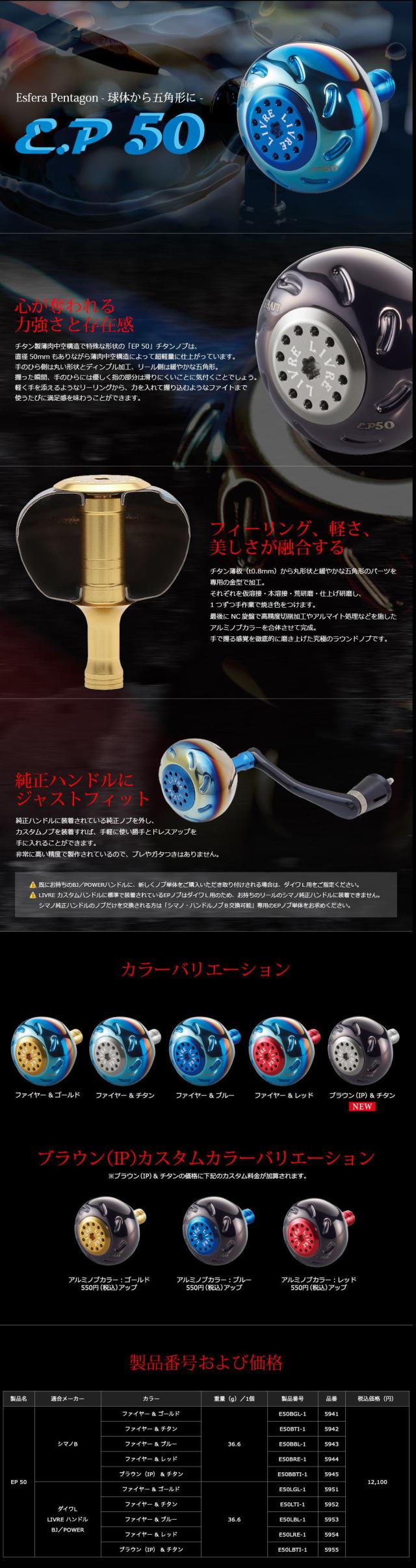 ※LIVREカスタムハンドルに標準で装着されているEPノブはダイワL用のため、シマノ純正ハンドルには取り付けできません。
