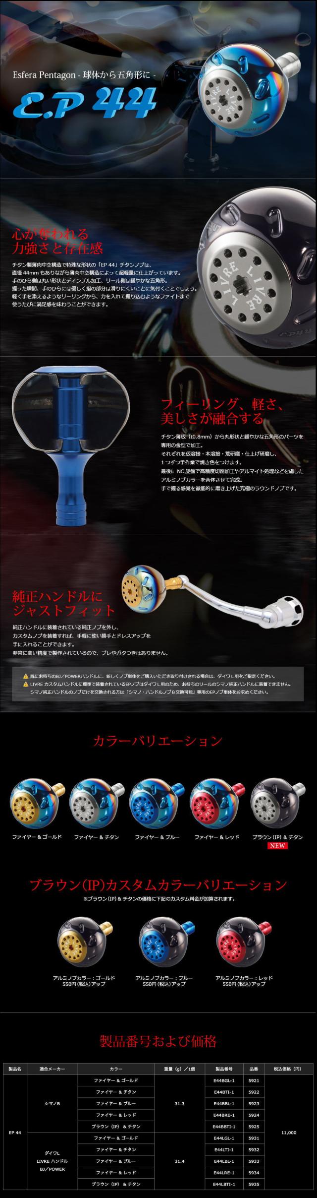 【リブレ/LIVRE】 EP44 (オフショア・ソルトウォーターフィッシング用チタン製丸型ハンドルノブ) 【ファイヤー, ブラウン(IP)/チタン】 HKAL