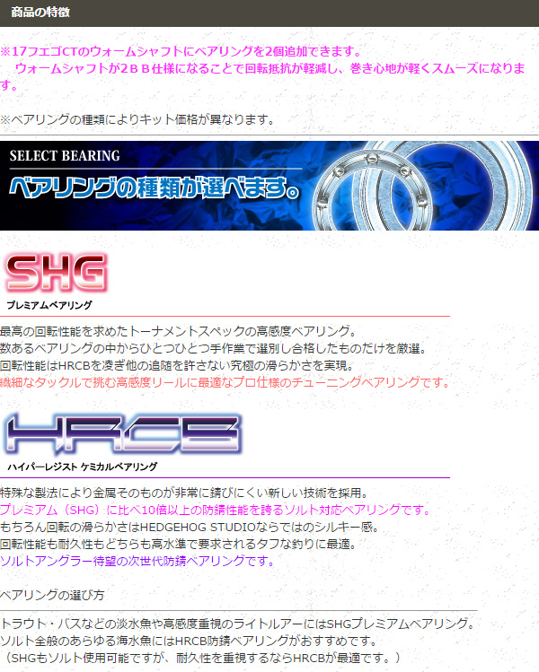 【ダイワ】17フエゴCT用 ウォームシャフトベアリング(+2BB)