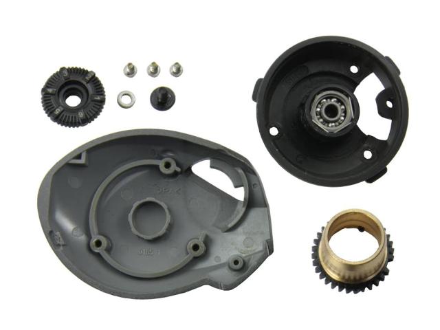 ダイヤル中央の固定ボルトを取り外し、ブレーキダイヤルとブレーキパイプギアを取り外します。ブレーキパイプギヤのツメが螺旋状の切れ込みに引っ掛かっているので、外れない場合は左右に回してブレーキパイプギヤを取り外して下さい。