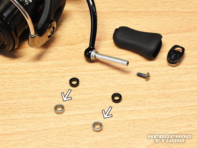 エアローターや精度の高いタフデジギアなどの恩恵で巻き感が滑らかなリールではありますが、ハンドルノブにベアリングを追加することでさらに上質な巻き心地と感度を向上させることが出来ます。