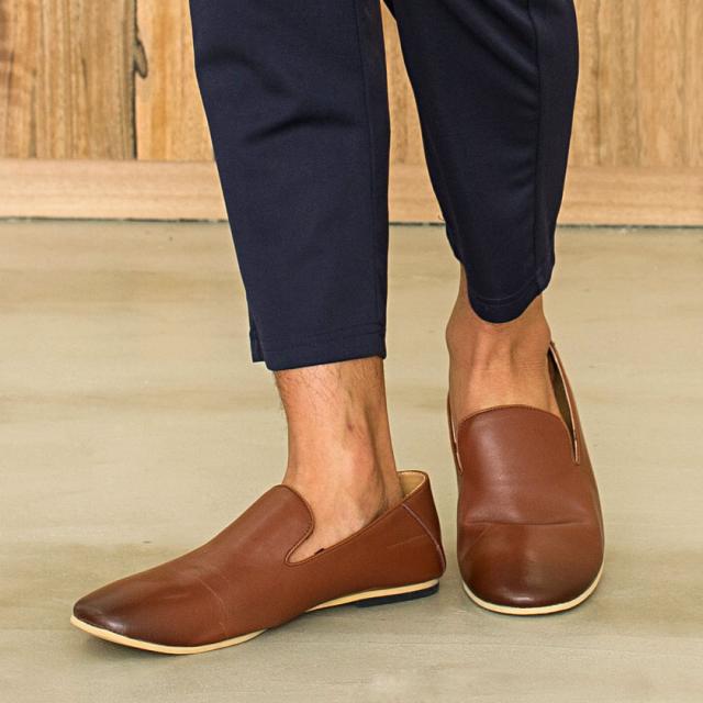 シンプルで合わせやすい、本革を使用した日本製の踵が踏めるオペラシューズ。