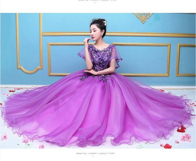 【4カラー・6サイズ】ロングドレス 演奏会 他と被らない ピアノ 発表会 ドレス 演奏会用ドレス 大きいサイズ 大人 ステージ衣装 袖付き カラードレス サファイア パープル レッド イエロー 袖あり 舞台衣装 コンサート ステージ da010t2
