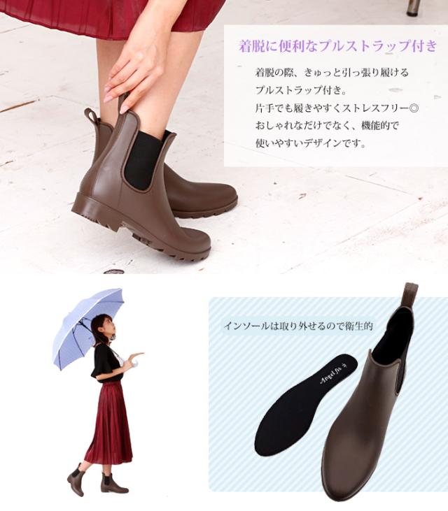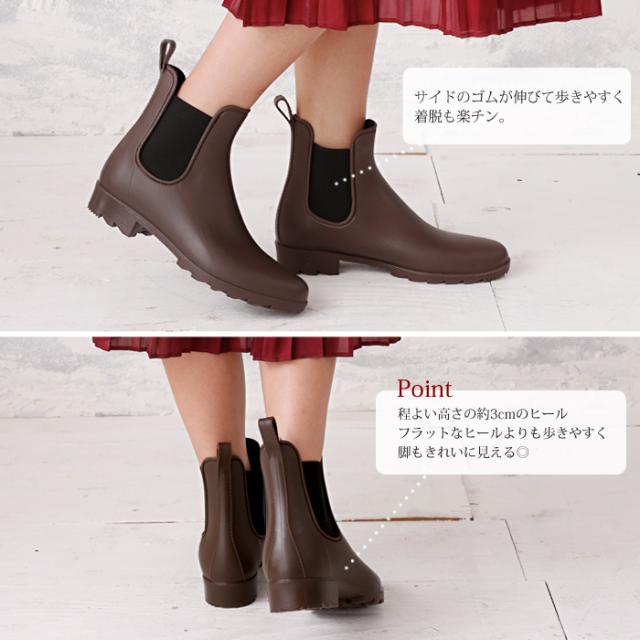 レインブーツ レディース ショート おしゃれ 軽量 雨天兼用 靴 長靴 ショート丈 サイドゴアブーツ (kh-18033) 晴れ雨兼用 女性 レインシューズ 歩きやすい 履きやすい ショートブーツ ミドル丈 軽い 通勤 通学 かわいい 春夏 黒 ブラック カーキ ブラウン 雨 雪 撥水 きれいめ