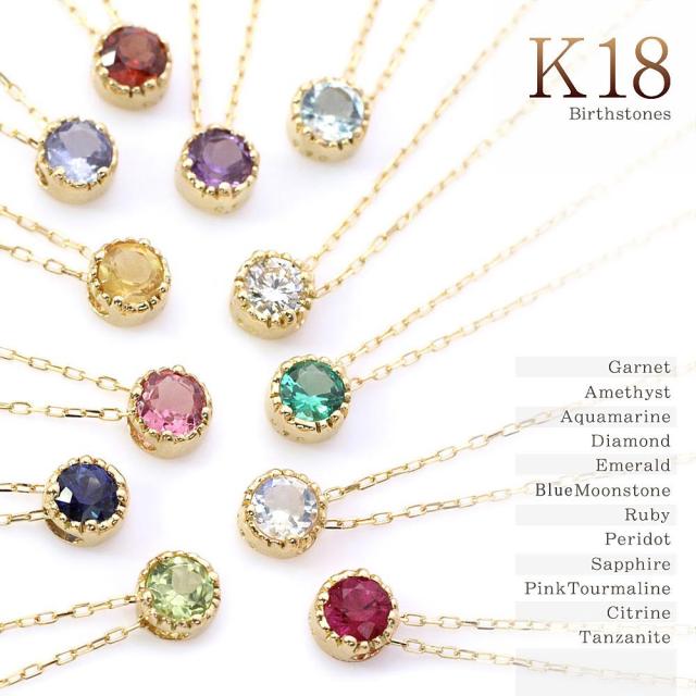 誕生石 ネックレス 選べる 18k ゴールド 18金 アクセサリー レディース ジュエリー プレゼント K18 一粒 シンプル 小ぶり 小粒 18金ネックレス 小さい 小さめ 可愛い 誕生石ネックレス クリスマス プレゼント 記念日 誕生日 女性 彼女 娘