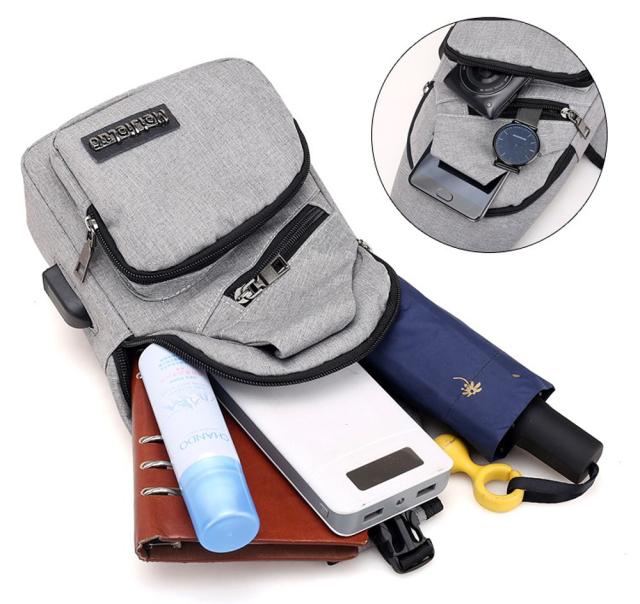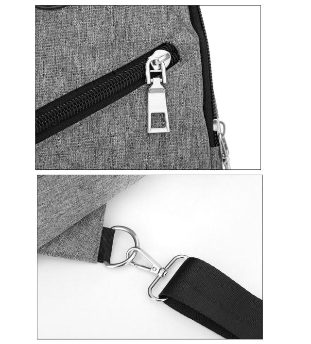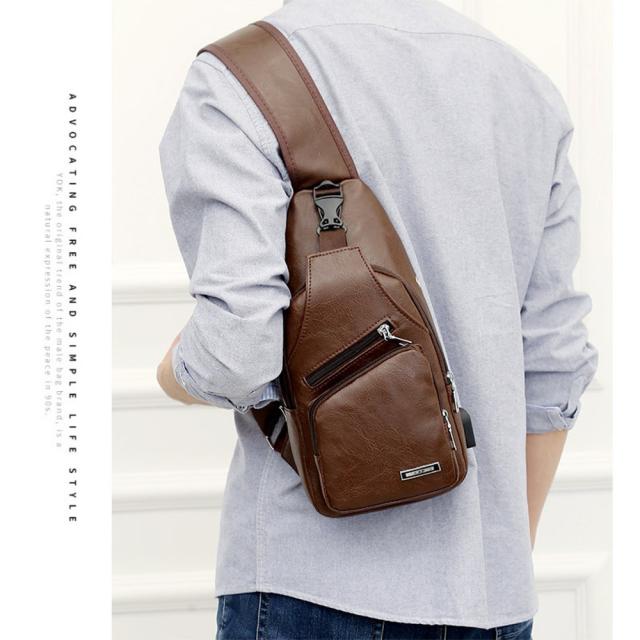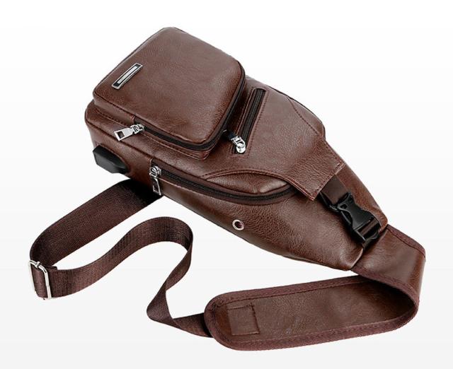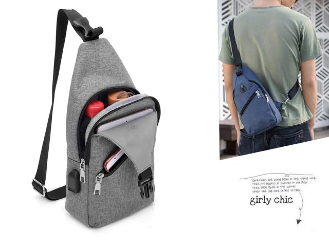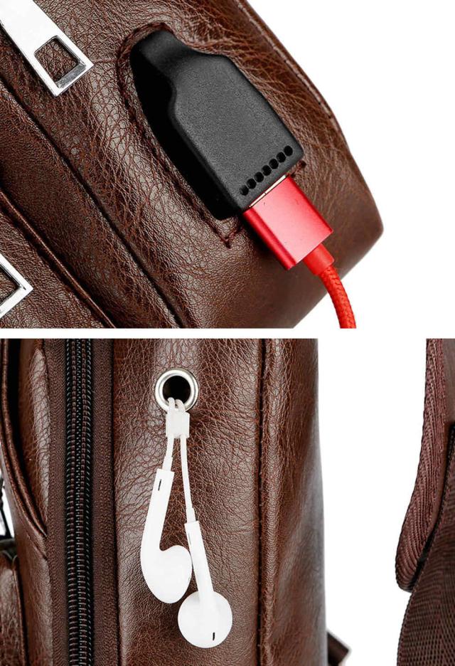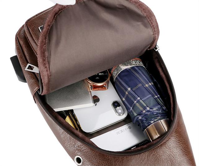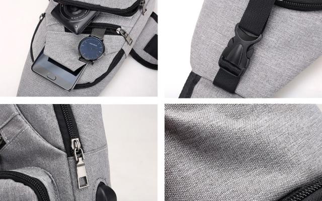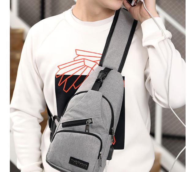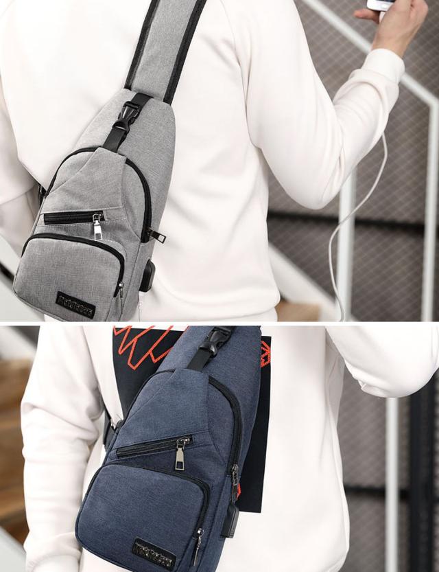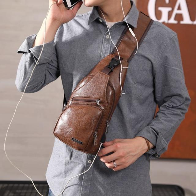 側面外部にUSBケーブルを接続できるポートが配備されたボディバッグ