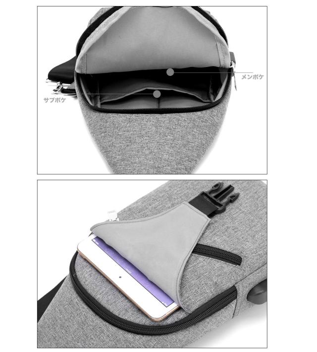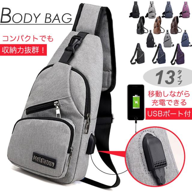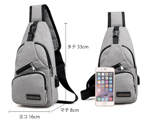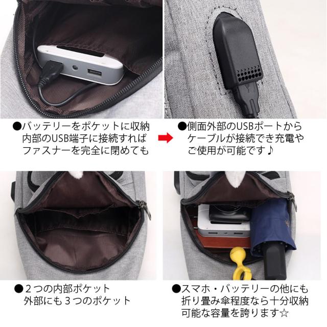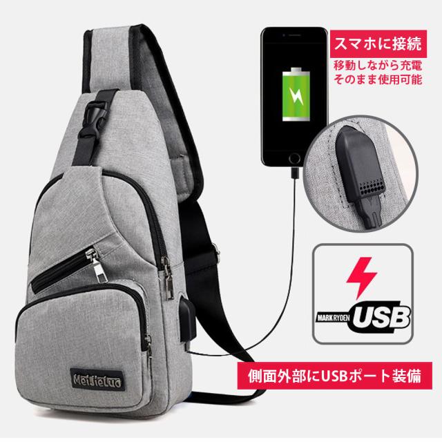 期間限定 SALE ボディバッグ USBポート付 男女兼用 ワンショルダー サコッシュ バック カバン 鞄 #A909 M便
