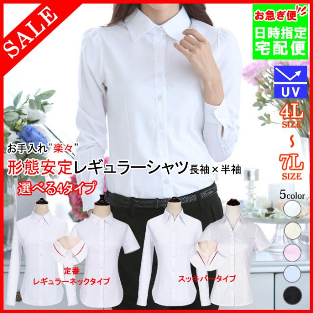 レディース トップス シャツ ブラウス ビジネス オフィス Yシャツフォーマル スーツ リクルート 就活 OL 事務服 無地 長袖 半袖 定番 開襟 スキッパー ホワイト オフホワイト ブラック サックス ピンク 白 黒 大きいサイズ 4L 5L 6L 7L お急ぎ便 受取日時指定