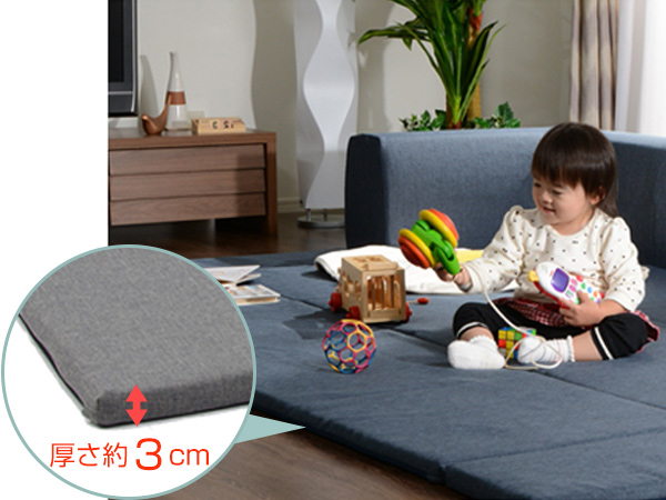 ハイハイや、歩き始めた赤ちゃんはよく転倒してしまいます。そんな時、転倒時の衝撃をマットの厚みが緩和してくれるので、お子様の遊び場所にピッタリです。