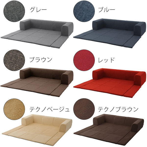座面のマットを折りたためばソファになり、広げればプレイマットのようになります。子育て世代には嬉しい洗えるカバーリングタイプです。オールウレタンなので硬い部分がなく、お子様にも安心してお使いいただけます。