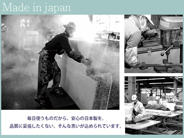 国内のソファメーカーが自社工場で生産している安心の日本製です。熟練した職人たちがひとつひとつ丁寧に作り上げています。