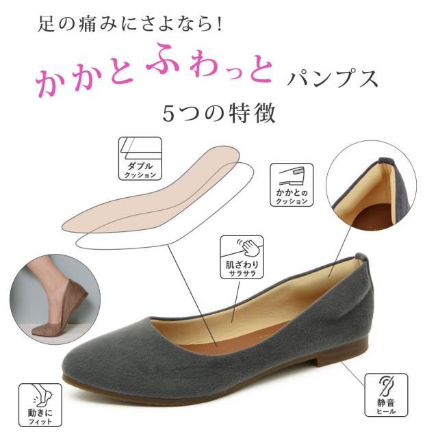 パンプス 痛くない 歩きやすい ローヒール 走れる 大きいサイズ ポインテッドトゥ スエード 黒 疲れにくい 通勤 ぺたんこ レディース 日本製 靴 春新作