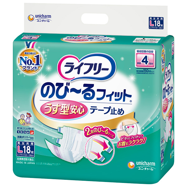 ユニチャームライフリーのび−るフィットうす型安心テ−プL18枚×4パック【直送品】PP