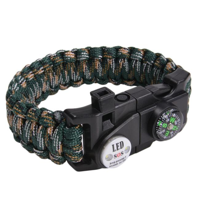 多機能 パラコードブレスレット LEDライト ホイッスル付 [ ウッドランドカモ ][rev60915]