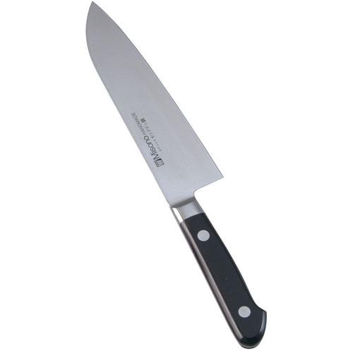 ■モリブデンとバナジウムの入ったハイカーボンの高級ステンレス・モリブデン鋼を使用し、ハイレベルの技術を駆使した理想の洋庖丁です。刀身と一体のツバが衛生的。切れの冴えと耐久性を両立させた最高の出来ばえが、またひとつ秀作を生みました。