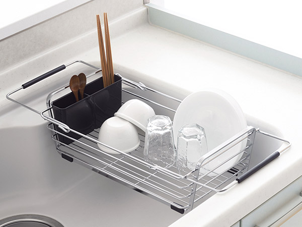 シンクに設置できるスライド式の水切りバスケット