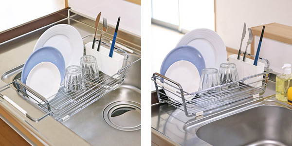 ご家庭のシンクに合わせて長さを変えることができる水切りバスケットです。