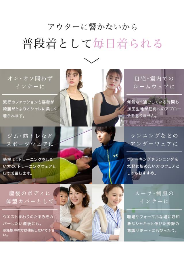 また、アウターに響かないので普段着として毎日着用していただけます。