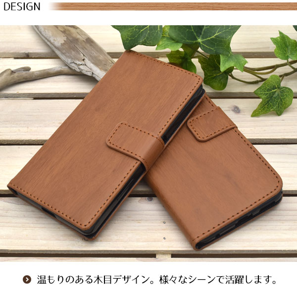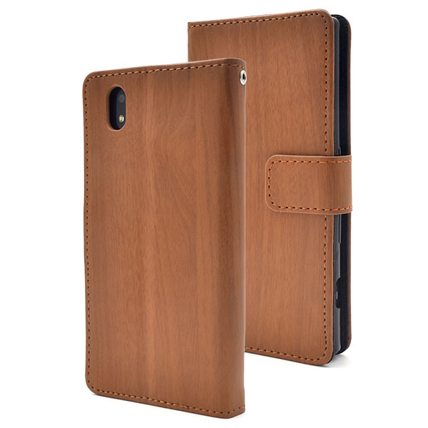 MONO MO-01K用ウッドデザイン手帳型ケース