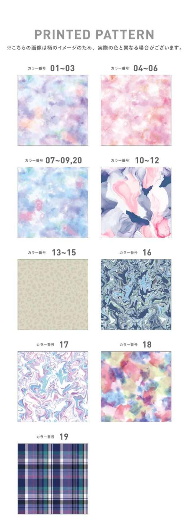 タイダイパープル,ライラック,ネイビー,ピンク,タイダイピンク,タイダイブルー,ウォーターピンク,レオパレードアイボリー,ブラック